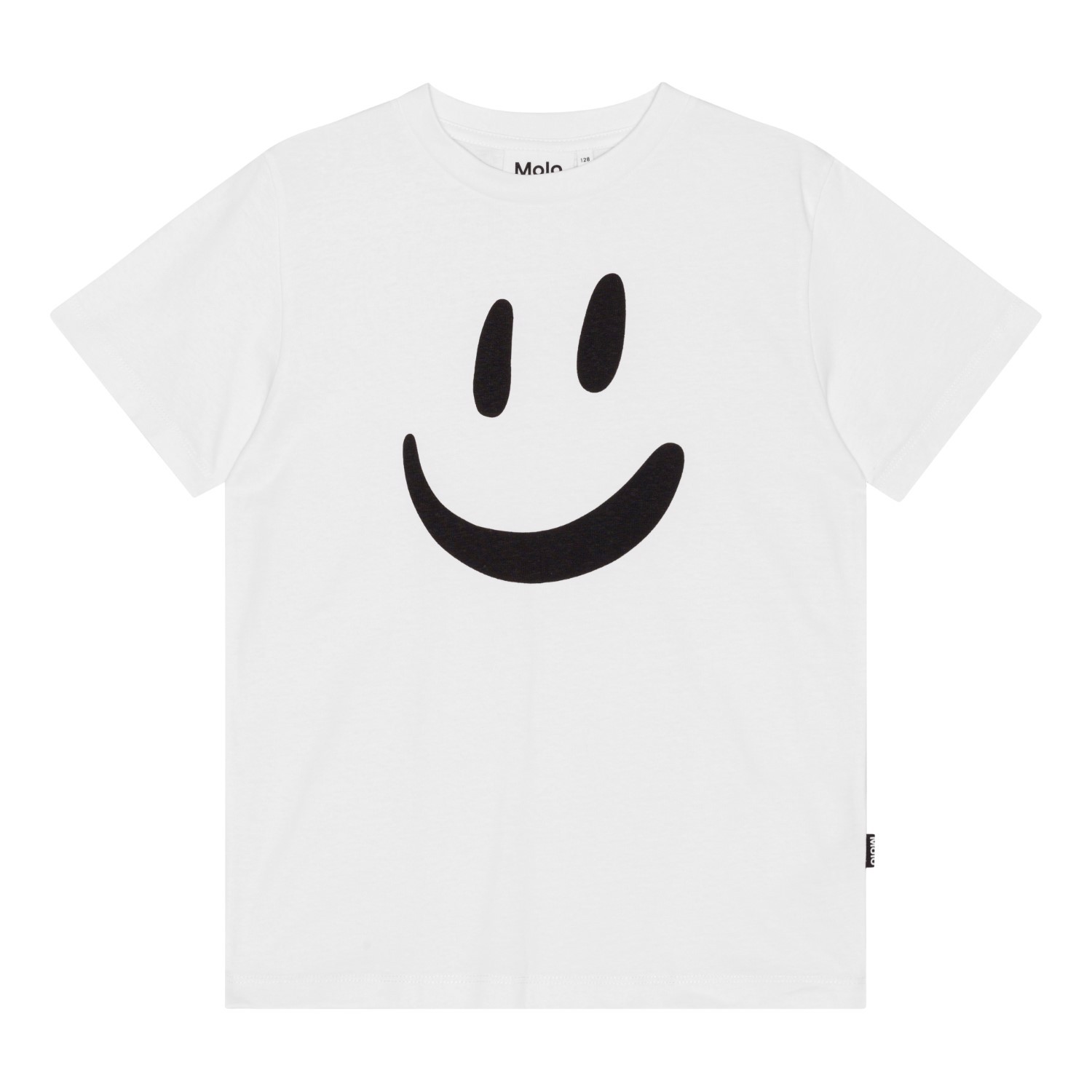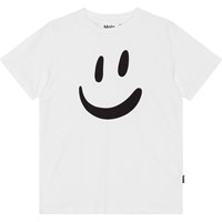Vit kortärmad t-shirt i ekologisk bomull med stor smiley framtill. T-shirten har rund hals och en normal passform.