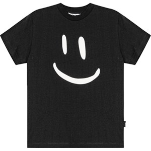 Molo x Plan International T-shirt i svart, tillverkad av ekologisk bomull. T-shirten har korta ärmar och en rund hals med ribbstickad kant. Den har en normal passform och en stor vit smiley på framsidan. Läs mer om Molo X Plan International här.