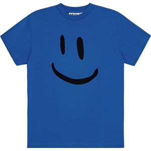 Molo x Plan International T-shirt i blå, tillverkad av ekologisk bomull. T-shirten har korta ärmar och en rund hals med ribbstickad kant. Den har en normal passform och en stor svart smiley på framsidan. Läs mer om Molo X Plan International här.