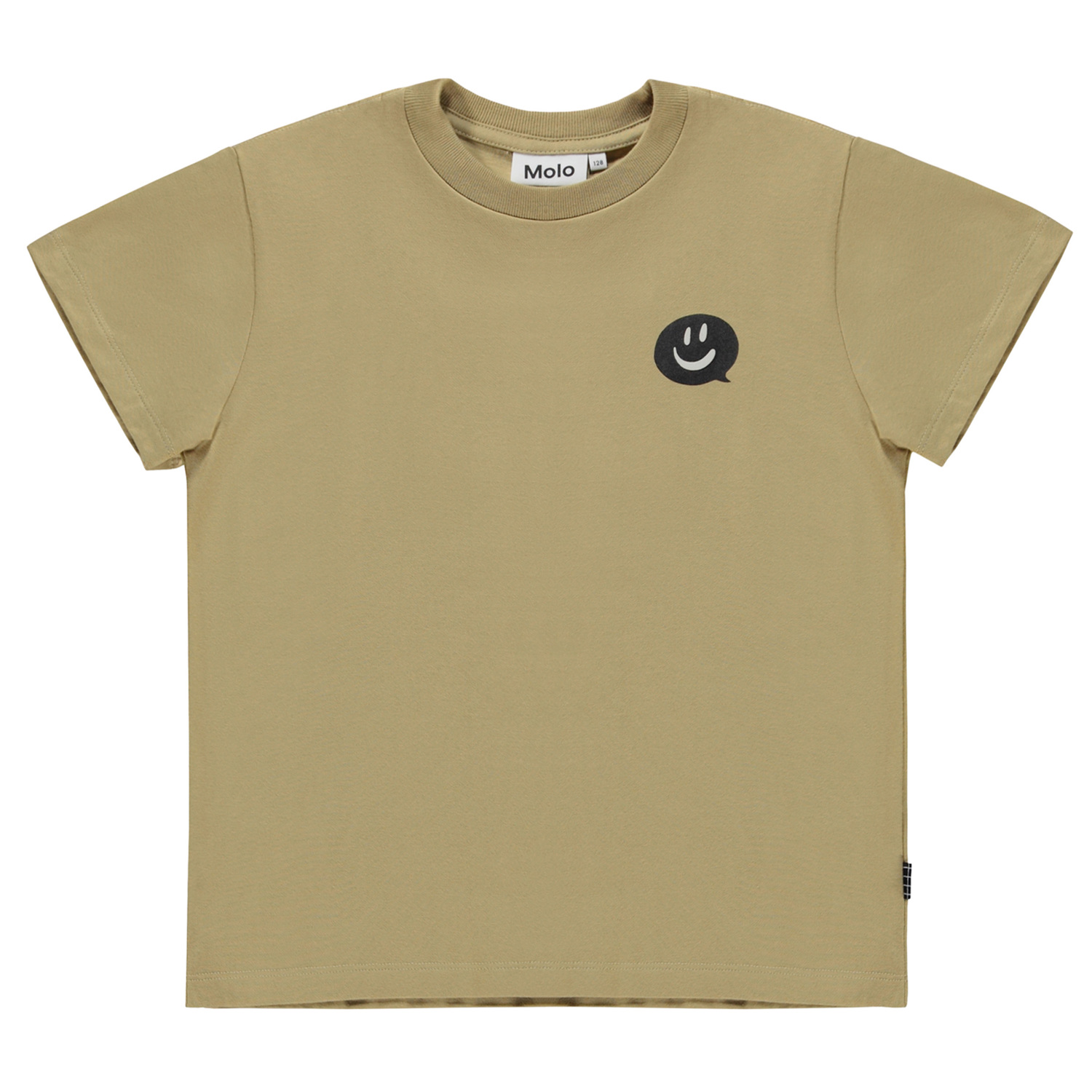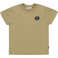 Brun t-shirt med en liten pratbubbla som sitter på sidan och säger glada och söta skaer. Denna t-shirt är tillverkad i 100% ekologisk bomull, har korta ärmar, rund hals med ribbkant och en normal passform.
