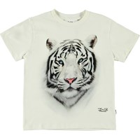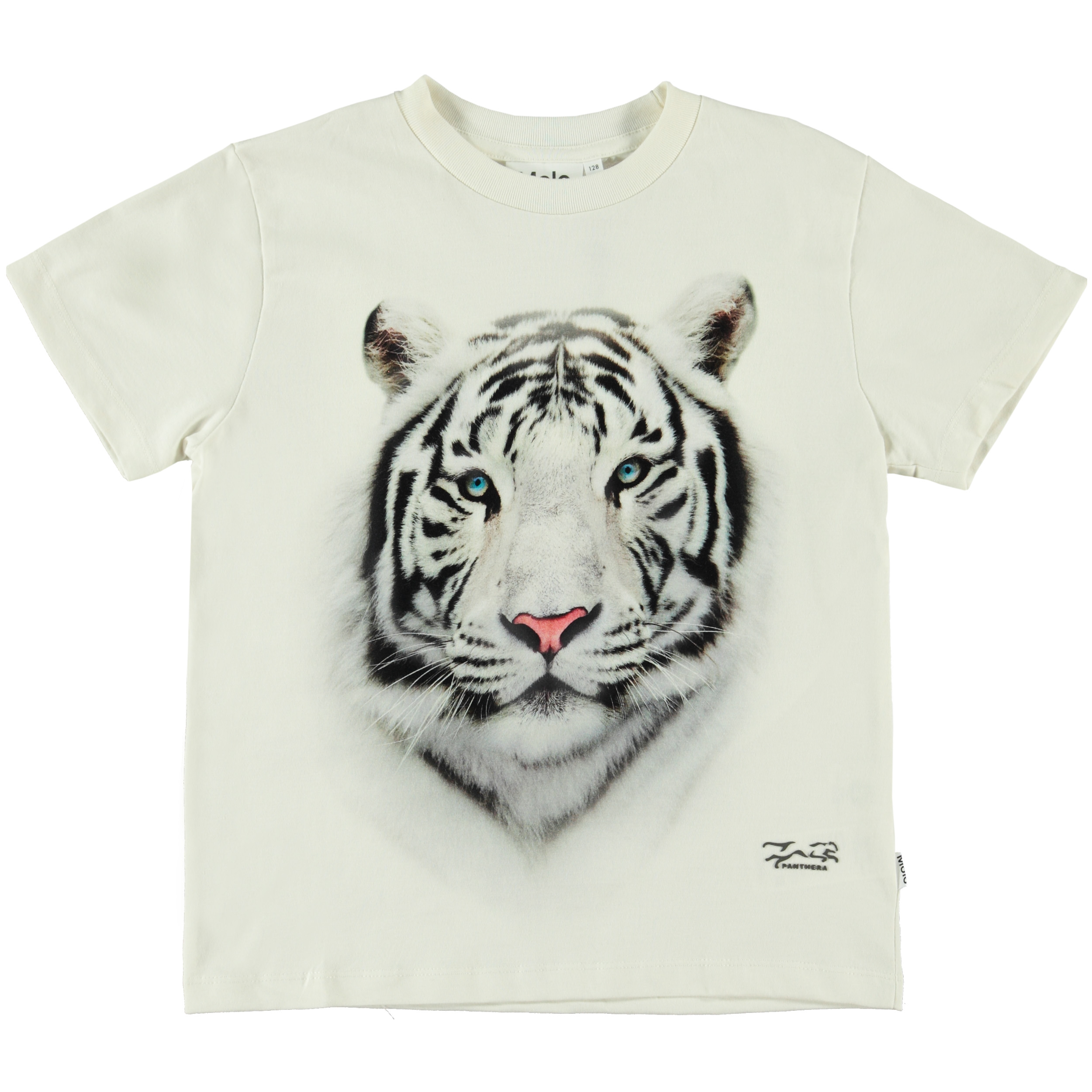 Roxo är en cremefärgad kortärmad t-shirt i ekologisk bomull. Framtill är en majestätisk tiger i svart och vita färger med fängslande blå ögon och rosa nos. Nederst på t-shirten är en tryckt Panthera logga. Denna vara är en del är Molo´s kollektion i sammarbete med Panthera som är den enda organisationen i världen, som uteslutande är dedikerande till bevarandet av världens 40 vilda kattraser och deras ekosystem.