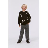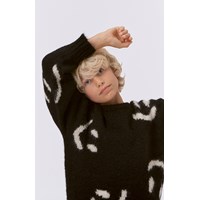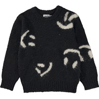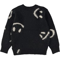 Svart stickad tröja med vita smileys. Denna stickade tröja är tillverkad i en mjuk alpaca/ull blandning, har långa ärmar, rund hals med ribb, ribb vid ärmar och höfter och en lös passform.