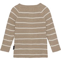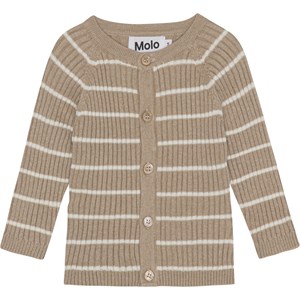 Beige stickad kofta med vita ränder till de minsta. Denna kofta är tillverkad i en bomull/ull blandning, har rund hals i ribb, långa ärmar med raglansnitt, knappar framtill och ribb vid ärmar och höfter. Matcha ev. denna kofta med byxorna, Sigmund, i samma kvalitet för det perfekta setet.