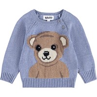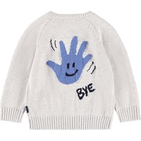 Beige stickad tröja för de små i en mjuk bomulls- och ullblandning med leende händer på framsidan och baksidan. Tröjan har en rund hals, ribbade kanter och knappar i nacken för att göra det enkelt att ta på och av. Kombinera den med matchande byxor för en komplett uppsättning.