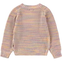 Multifärgad stickad tröja i rosatoner i en ullblandning. Tröjan har raglanärmar och en rund halsringning. Tröjan har ribbade kanter runt halsen, ärmsluten och midjan och en normal passform.