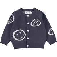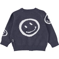 Brody är en svart stickad babykofta med vita smileys och vita knappar. Kombinera koftan med matchande byxor.