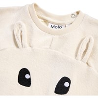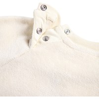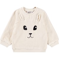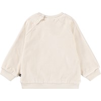 Off-white sweatshirt för de små i mjuk ekologisk bomull med en broderad teddybjörn på framsidan. Tröjan har raglanärmar, ribbade kanter runt midjan och ärmarna samt en rund halsringning med två tryckknappar i nacken för att göra den enkel att ta på och av. Kombinera den med matchande byxor för en komplett uppsättning.