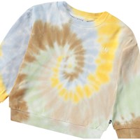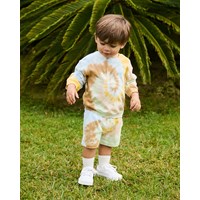 Multifärgad tie-dye tröja för de små i ekologisk bomull. Tröjan är gjord av mjuk jersey med ribbade kanter och en broderad smiley. Matcha med matchande shorts för en komplett outfit.All vår tie-dye är handgjord, vilket skapar unika mönster som varierar från plagg till plagg.
