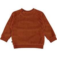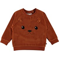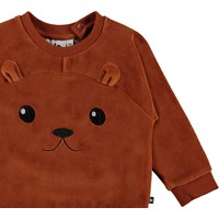 Derry är en babytröja i brun velour med ögon och påsydda öron framtill.