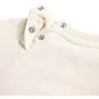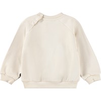 Off-white sweatshirt för de små i mjuk ekologisk bomull med en blå fågel på framsidan. Sweatshirten har raglanärmar, ribbade kanter runt midjan och ärmarna samt en rund halsringning med två tryckknappar i nacken för att göra den enkel att ta på och av. Kombinera den med matchande byxor för en komplett uppsättning.