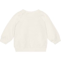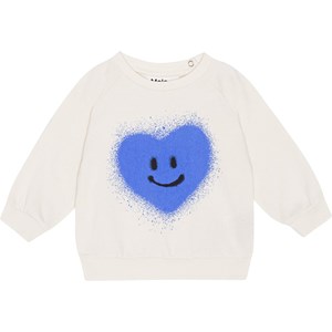 Råvit tröja till baby i ekologisk bomullsjersey. Tröjan har ribbkant vid höfter och ärmar samt rund hals med två tryckknappar i nacken som gör den enkel att ta av och på. Tröjan har ett stort grafittihjärta som ler till dig och världen. Kombinera tröjan med matchande byxor och få ett komplett set.