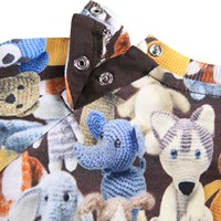 Tröja för de små i mjuk ekologisk bomull med virkade teddybjörnar. Tröjan har raglanärmar, ribbade kanter runt midjan och ärmar samt en rund halsringning med två tryckknappar på baksidan för att göra den enkel att ta på och av. Kombinera den med matchande byxor för en komplett uppsättning.
