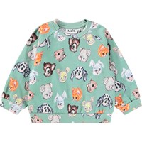 Grön sweatshirt för de små i mjuk ekologisk bomull med gamla tecknade figurer. Sweatshirten har raglanärmar, ribbade kanter runt midjan och ärmar samt en rund halsringning med två tryckknappar på baksidan för att göra den enkel att ta på och av. Kombinera den med matchande byxor för en komplett uppsättning.