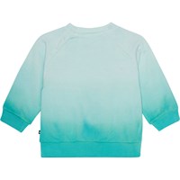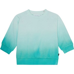 Ljusblå och turkos tie-dye tröja till baby i ekologisk bomullsvelour. Tröjan har ribbkant vid höfter och ärmar samt rund hals med två tryckknappar i nacken som gör den enkel att ta av och på. Detta plagg kan också köpas som komplett set med matchande sweatpants. Notera att allt vårt tie-dye är handgjort och kan därför variera från plagg till plagg.