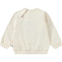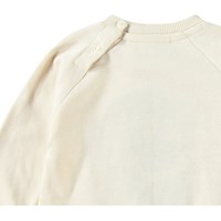 Mjuk sweatshirt för de små i ekologisk bomull. Sweatshirten har raglanärmar, ribbade kanter och en rund halsringning med knäppning bakom axeln, vilket gör den enkel att ta på och av. Denna sweatshirt är beige med en mjuk smiley i blått på framsidan. Matcha med matchande byxor för en komplett outfit.