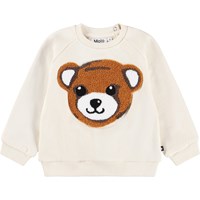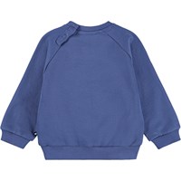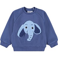 Blå sweatshirt för de små i mjuk ekologisk bomull med en broderad elefant på framsidan. Sweatshirten har raglanärmar, ribbade kanter runt midjan och ärmarna samt en rund halsringning med två tryckknappar i nacken för att göra den enkel att ta på och av. Kombinera den med matchande byxor för en komplett uppsättning.