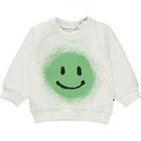 Disc är en vit tröja till baby med grön smiley på magen. Tröjan har knappar bak i nacken. Kombinera med matchande babybyxor.