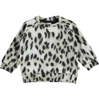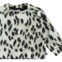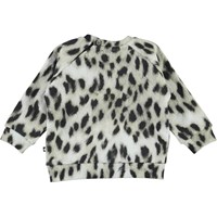 Babytröja med snöleoparder. Tröjan har en rund halsringning och en tryckknapp i nacken, vilket gör den enkel att ta av och på. Tröjan är tillverkad av 100% ekologisk bomull.