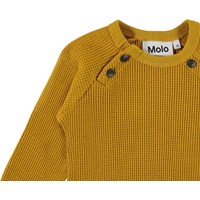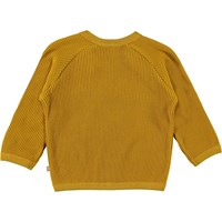 Dolly är en guldig babytröja i våfflad ekologisk bomull. Tröjan har knappar framtill.