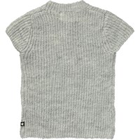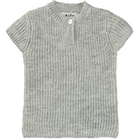 Gråmelerad stickad tröja till de minsta. Denna tröja är tillverkad i en mjuk viskos/ull blandnng, har korta ärmar och en rund hals med knapp.