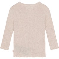 Rosa kofta till baby i mjuk ribbad viskosblandning. Koftan är tight, har rund hals med en liten fin ribbkant och pärlemorsknappar framtill. Kombinera koftan med matchande byxor för ett mjukt och lyxigt set.