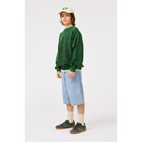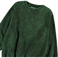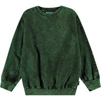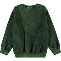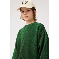 Grön sweatshirt i mjuk ekologisk bomull med ribbade kanter vid halsen, ärmar och nederkant. Sweatshirten har en oversized passform, med en tvättad effekt som ger den gröna färgen olika nyanser.
