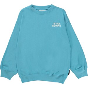 Mar är en blå unisex sweatshirt med texten "Stay Sunny" och en bra längd. Kombinera tröjan med matchande shorts.