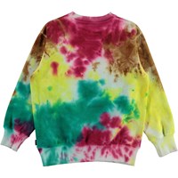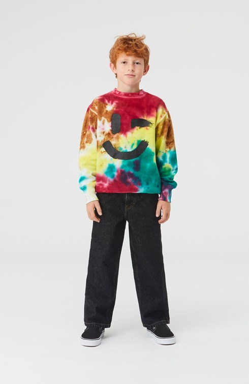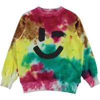 Mattis är en unisex-tröja med batikmönster och smiley på framsidan. Tröjan har en rund halsringning. Kombinera tröjan med matchande byxor.