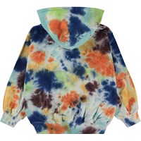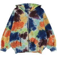 Multifärgad hoodie med tie-dye mönster. Denna hoodie är tillverkad i 100% bomull, har känguruficka och dragkedja, ribbkant vid ärmslut och höfter och en lös passform. Molo´s tie-dye är handgjort och kan därför variera från plagg till plagg. Matcha ev. denna tröja med byxorna, Adan, i samma färg för det perfekta setet.