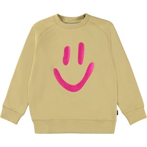 Mike är en beige/grön unisex sweatshirt med en rosa smiley framtill.