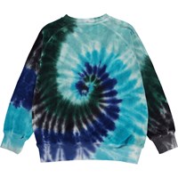 Blå sweatshirt med tie-dye i olika blå nyanser. Denna tröja är tillverkad i 100% mjuk bomullsvelour, har en rund hals med ribbkant, raglanärmar, ribb vid ärmar och höfter och en normal passform. Matcha ev. tröjan med byxorna, Alvar, i samma mönster för det perfekta setet. Molo´s tie-dye är handgjort och kan därför variera från plagg till plagg.
