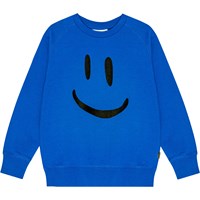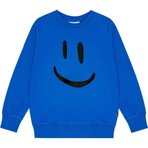 Molo och Plan International har samarbetat för att skapa en sweatshirt tillverkad av ekologisk bomull. Den blåa tröjan har en rund hals, raglanärmar och ribbstickade muddar på ärmarna och nederkanten. Den lösa passformen pryds av en stor svart broderad smiley på framsidan. Den borstade insidan ger en mjuk och varm känsla till plagget, vilket gör det bekvämt att ha på. Läs mer om Molo X Plan International här.