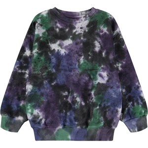 Sval sweatshirt i mjuk ekologisk bomull med tie-dye i svart, lila, grön och blå. Sweatshirten har ribbade kanter runt halsen, ärmar och midja, samt har en lös passform. All vår tie-dye är handgjord vilket skapar ett unikt mönster som varierar från plagg till plagg.