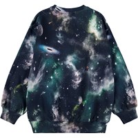 Snygg sweatshirt i mjuk ekologisk bomull med rymdmönster. Sweatshirten har ribbade kanter runt halsen, ärmsluten och midjan, samt har en lös passform.