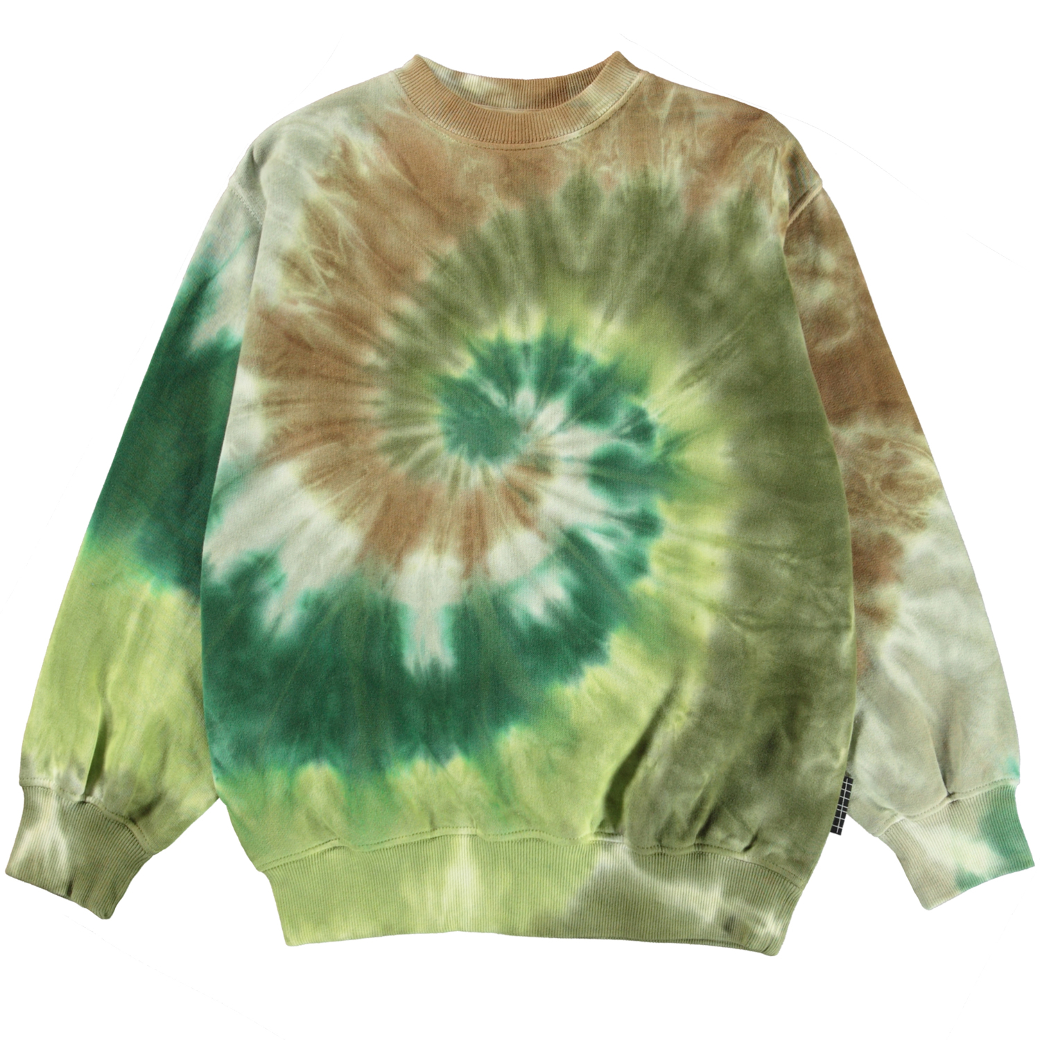 Monti är en unisex sweatshirt med grönt och brunt tie-dye mönster. Kombinera tröjan med matchande byxor.