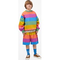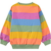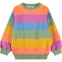 Randig, flerfärgad sweatshirt i mjuk, ekologisk bomull med ribbade kanter vid halsen, ärmarna och nederkanten. Sweatshirten har en lös och avslappnad passform med breda horisontella ränder.