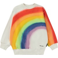 Här är tjocktröjan Monti i vit med en färgrik regnbåge både framtill och på den ena ärmen. Tröjan har en oversized passform med ribbkant vid ärmslut och nertill.