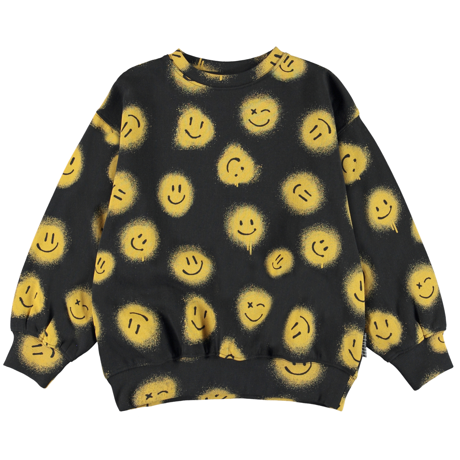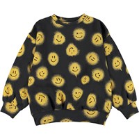 Monti är en unisex sweatshirt i svart med gula smileys. Kombinera tröjan med matchande byxor.