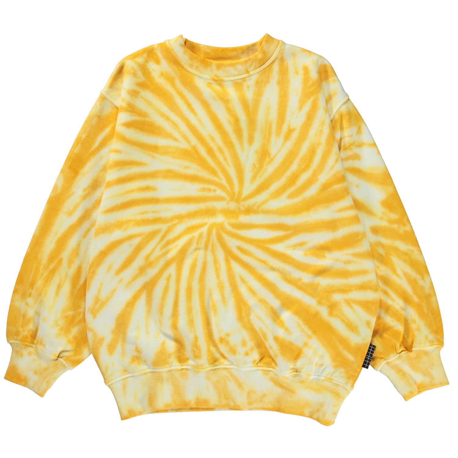 Monti är en unisex sweatshirt i gul med tie-dye Tröjan har ribbad kant vid hals, ärmslut och nertill. Allt Molo´s tie-dye är handgjort och kan däför variera från olagg till plagg.