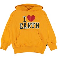 Moz är en orange hoodie, där färgen sticker ut och har "I love earth" broderad över bröstet. Moz har känguruficka och ribb vid ärmslut och nederkant.