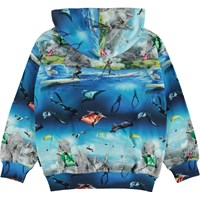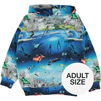 Moz är en färgrik luvtröja i vuxenstorlekar med ett snyggt mönster av olika extremsportsutövare. Ett mönster man verkligen kan utforska. Luvtröjan är en del av Molo’s samarbete med konsthall Aarhus till utställningen Go Extreme.