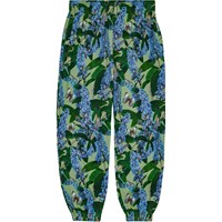 Gröna sweatpants i ekologisk bomull med en borstad insida, vilket gör dem mjuka och varma att ha på. Byxorna har en normal passform, sidofickor, elastiska benslut och gummiband imidjan med invändigt dragsnöre. Trycket är ett over-all-tryck av blå-lila fjärilsbuskar med flygande fjärilar i vackra färger. Kombinera byxorna med en matchande tröja för ett komplett set.