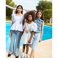 Blå jeans i ekologisk bomull. Dessa jeans är lätt utsvängda med fickor fram och bak. Midjan har bältesöglor, knapp och dragkedja, samt en invändig justerbar resår för en bra passform. Dessutom har byxorna en snygg detalj med stora cargofickor mitt på benen.