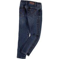 Adele är ett par jeans med sömmar på sidan av benen. Byxorna har en vanlig parform. Observera att storlekar upp till och med 134 har en tryckknapp och inte en vanlig denim-knapp.