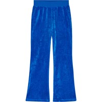 Svarta velourbyxor i mjuk bomull med en utsvängda ben. Byxorna har ett brett elastiskt midjeband med en invändig dragsko, vilket gör dem lätta att ta på och bekväma att ha på. Kombinera byxorna med en matchande kofta för en mjuk och sportig outfit.