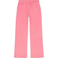 Rosa velourbyxor i en mjuk bomullsblandning med trumpetform. Byxorna har en bred elastisk midjeresår med en invändig dragsko som gör dem lätta att ta på och bekväma att bära. Kombinera byxorna med den matchande koftan för ett mjukt och sportigt set.