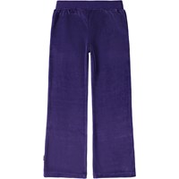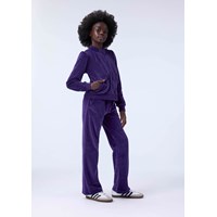 Lila velourbyxor i en mjuk bomullsblandning med trumpetform. Byxorna har en bred elastisk midja med en invändig dragsko som gör dem lätta att ta på och bekväma att bära. Kombinera byxorna med den matchande koftan för en mjuk och sportig uppsättning.