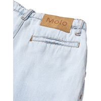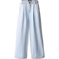 Breda mörkblå denimjeans med framfickor, bakficka och ett stort veck framtill för en boxig look. De har justerbar midja med hällor, knapp och dragkedja. De minsta storlekarna (92–134) har en tryckknapp, medan storlekarna 140–176 har en klassisk jeansknapp.