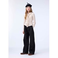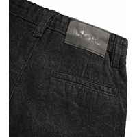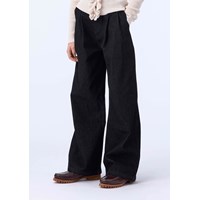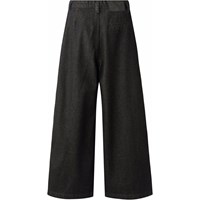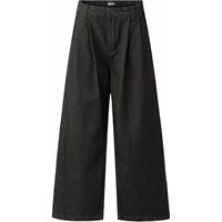 Mörkgrå jeans i lätt bomull med lös passform. Jeansen är något höga i midjan med vida ben och veck fram som skapar en fin silhuett. De har två sidofickor och en bakficka. Midjan har knapp och dragkedja samt justerbar resår för en bra passform.