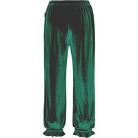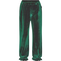 Mjuka gröna velourbyxor med en lös passform, resår i midjan och en fin volang-detalj vid anklarna. Kombinera dem med en matchande topp för en mjuk och elegant outfit.